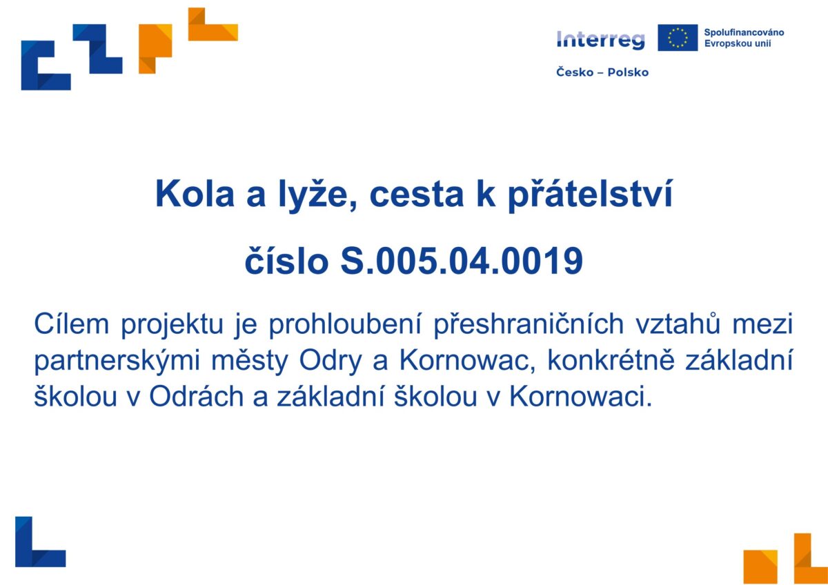 Cílem projektu je prohloubení přeshraničních vztahů mezi partnerskými městy Odry a Kornowac, konkrétně základní školou v Odrách a základní školou v Kornowaci. Realizací projektu dojde k naplnění dalších cílů: