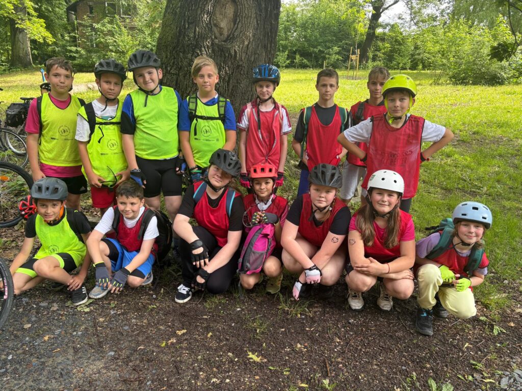 Úterní ráno nás probudilo poněkud podmračenou oblohou, nicméně nám to nebránilo připravit se na další etapu našeho kurzu. Tentokrát nás čekaly rozhledny a vyhlídky v okolí Kornowace. Vyjeli jsme krátce po deváté hodině a zakrátko jsme byli na vyhlídce Bociek. Pravda, není to klasická rozhledna, protože se nachází v údolí a je vysoká asi 8 metrů, ale je krásná. Navíc zde došlo ke klíčovému rozhodnutí, zda pojedeme po naplánované trase a budeme riskovat nějakou tu louži na cestě nebo se vrátíme na asfaltku. Z pochopitelných důvodů jsme šli za dobrodružstvím a zahájili soutěž o největšího bahňáka, do níž se hlavně kluci zapojili velmi zodpovědně. Jízdu všichni zvládli, a tak jsme se po 2 hodinách jízdy po loukách dostali k rozhledně v Ratiboři. Zde jsme posvačili a pokračovali k domu Sester Selesiánek, kde jsme si poslechli pohnutý osud této stavby. A pak už nás čekal návrat ke škole. Po obědě jsme odjeli na ubytování, ale ještě před tím jsme vyhlásili výsledky soutěže o největšího bahňáka – vyhrál Vojta. Dnešní vyjížďka měla 12,7 km a proběhla bez deště. Ale nebojte! Vydatně jsme zmokli při cestě na sportovní odpoledne, kdy měly stěrače na autobuse co dělat, abychom viděli na cestu. Když jsme skončili po dvou hodinách badmintonu, přehazované, ringa a stolního tenisu nebo stolního fotbalu, čekalo nás venku azurové nebe a krásné teplo, takže jsme se rozhodli jít po večeři ještě na zmrzlinu. Vše se podařilo a tak jdeme spát s pocitem dobře vykonané práce.
