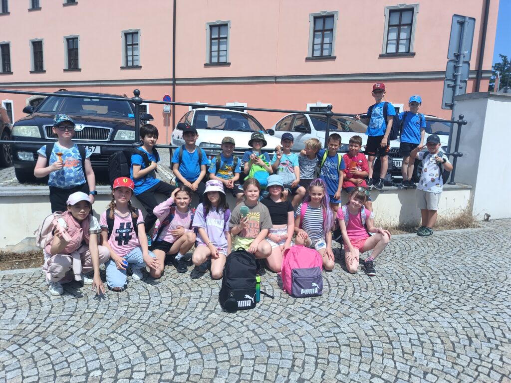 Dnes jsme za slunečného a velmi teplého dne vyrazili směrem k arboretu v Ratiboři. Jeli jsme lesními cestami asi 6 km, než jsme slezli z kol před středověkou tvrzí a šli na prohlídku naučné stezky. Součástí bylo i minizoo, kde jsme viděli kozy, bažanty, pávy nebo čínská prasata. Když jsme se vrátili zpět k tvrzi, čekalo na nás překvapení v podobě opékání špekáčků na roštu nad ohništěm. Buřty se asi povedly, protože všichni se s chutí najedli. Po obědě nás čekal návrat do Kornowace po cyklostezce podél hlavní cesty. Zajímavostí bylo, že plných 7 kilometrů vedlo do kopce, takže správný prubířský kámen. Musím říct, že všichni bojovali ze všech sil, takže velká pochvala! Dnes jsme ujeli skoro 17 kilometrů! Odpolední aktivity byly věnovány pohybovým dovednostem – jízdě zručnosti a přípravě na zítřejší mezinárodní fotbalové utkání. Den jsme po večeři zakončili vycházkou do centra Ratiboře, kde si děti chtěly jít nakoupit něco na zub a něco domů. Snad se to povedlo…