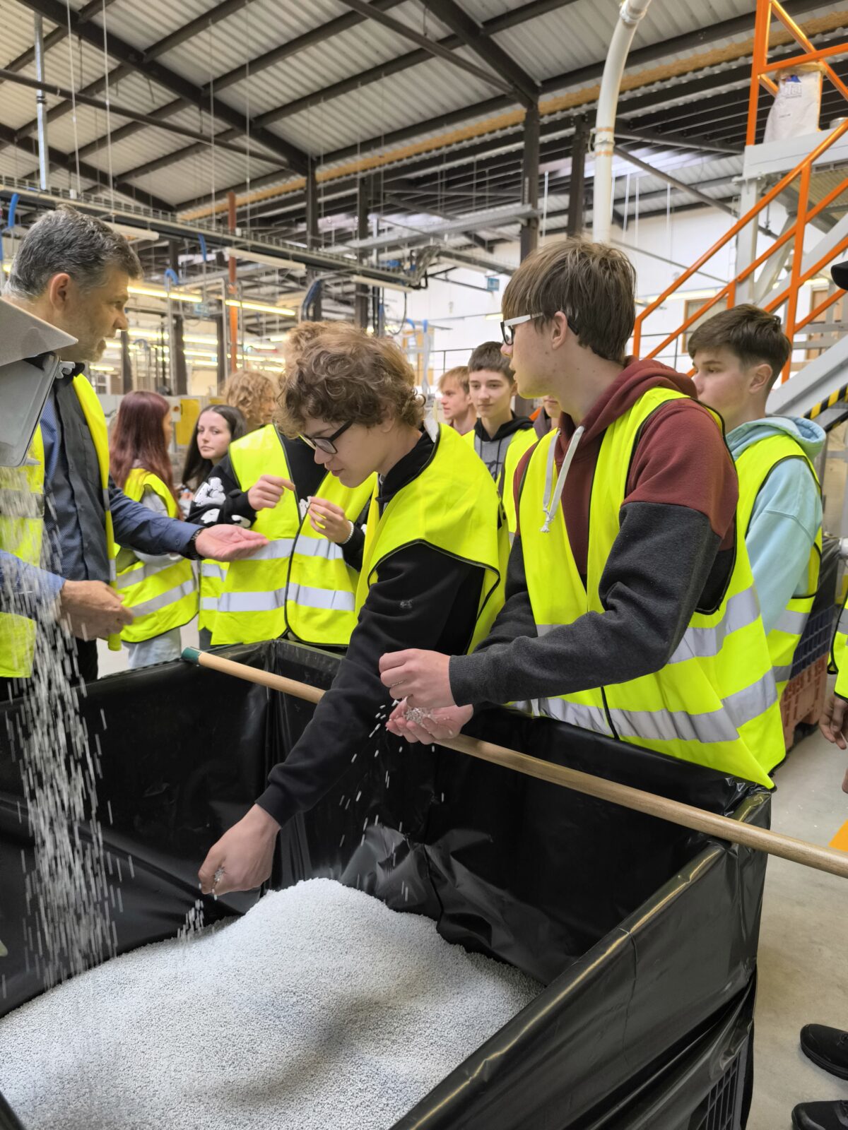 Po úvodním povídání jsme se přesunuli do provozu. Viděli jsme výrobu plastových profilů, korugovaných trubek, hadiček, navštívili jsme i obrovské sklady a nástrojárnu. Žáci tak měli možnost poznat reálné prostředí moderní průmyslové výroby a propojit školní učivo s praxí.