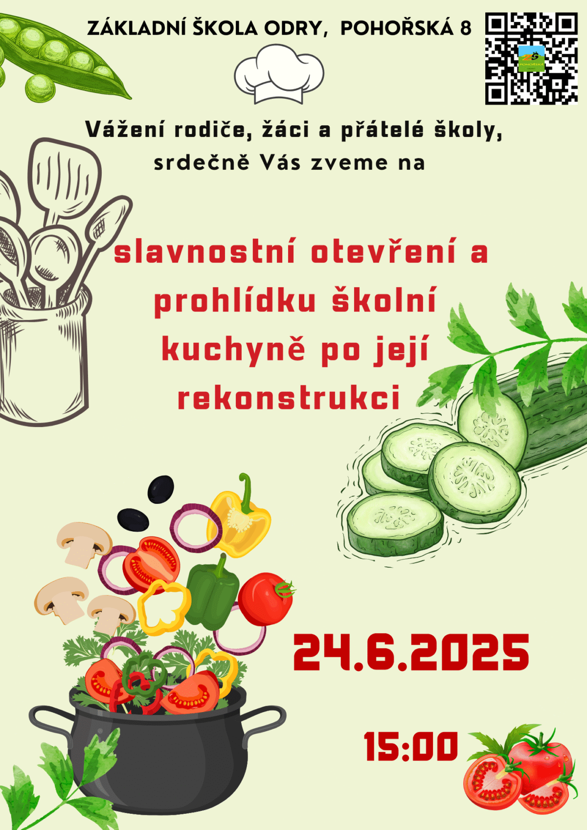 srdečně vás zveme 24.6.2025 na prohlídku zrekonstruované školní kuchyně