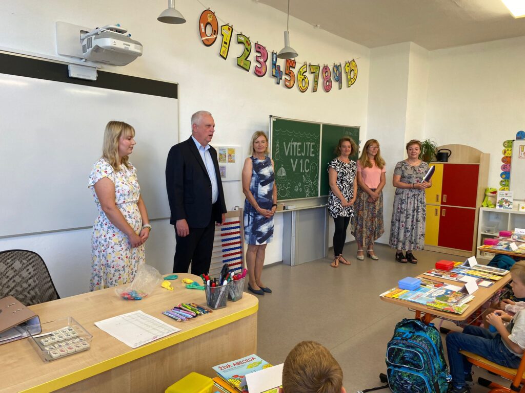 Dne 1. září jsme ve škole přivítali 56 šťastných, jen mírně vystrašených prvňáčků, které doprovázeli jejich rodiče. Děti ve třech třídách přivítal pan ředitel Mgr. Jan Jursík, paní místostarostka Mgr. Libuše Králová a třídní učitelky Mgr. Martina Sovová, Mgr. Iveta Zástěrová a Mgr. Michaela Maleňáková. Společně dětem i jejich rodičům popřáli hodně úspěchů a radosti na cestě za poznáním.