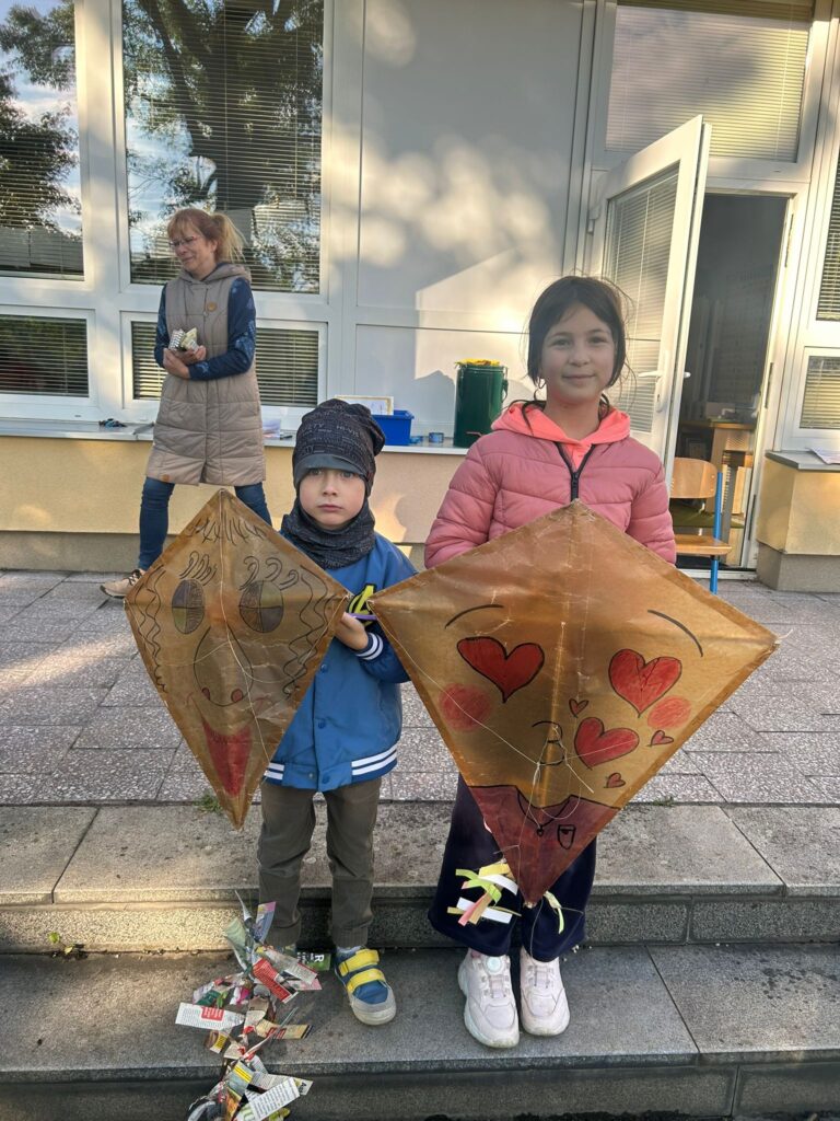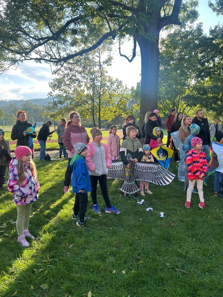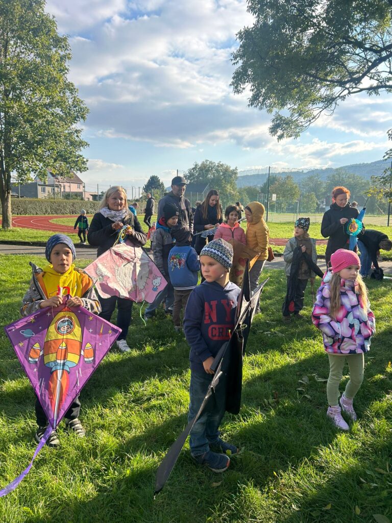 Po propršeném týdnu se jako na objednávku, ve čtvrtek 2. 10. 2025, ukázalo sluníčko a na hřišti ZŠ Pohořská se odpoledne začali scházet účastníci tradiční drakiády. Po absolvování Dračí stezky a vyluštění tajenky začaly děti s rodiči i prarodiči začít pouštět draky. Některým se dařilo více, některým méně, ale bavili se všichni. Nakonec jsme vyhlásili 5 nejlépe létajících draků a odměnu dostaly i tři děti, které měly draky vlastnoručně vyrobené. Děkujeme všem za účast a těšíme se na další rok.