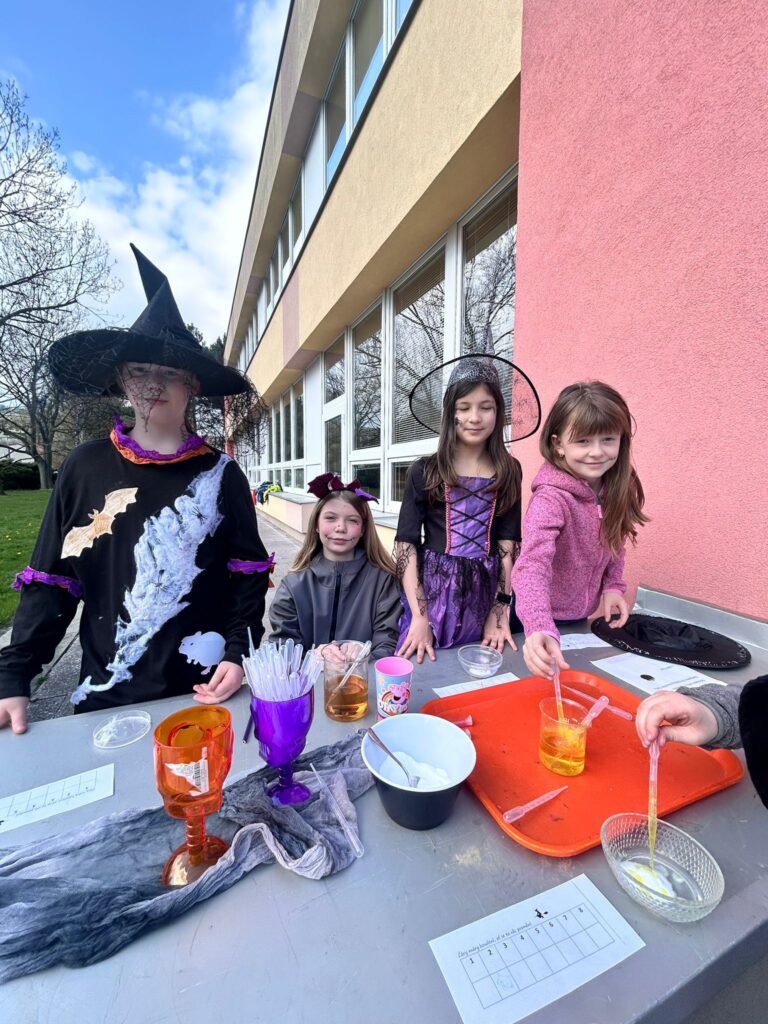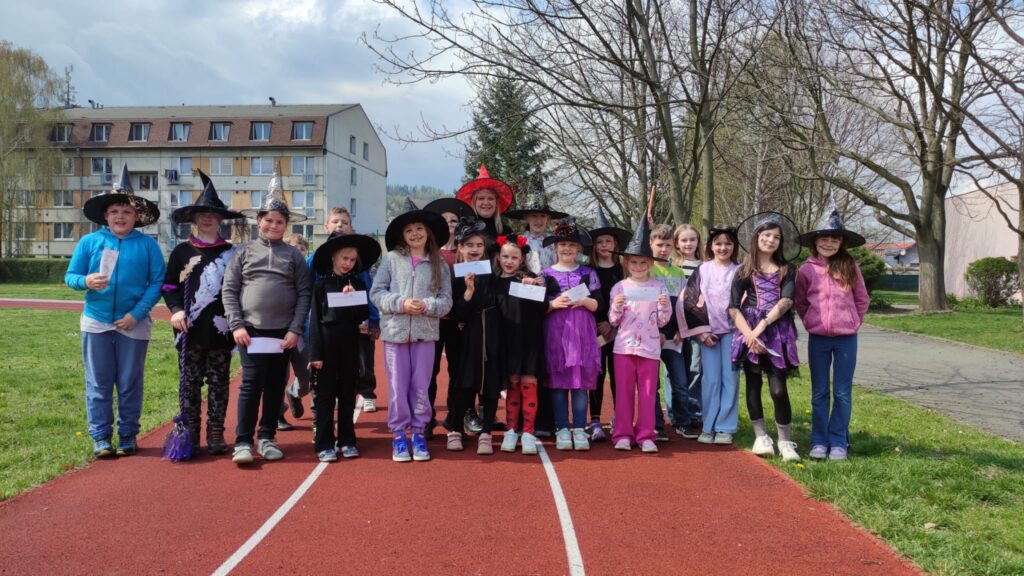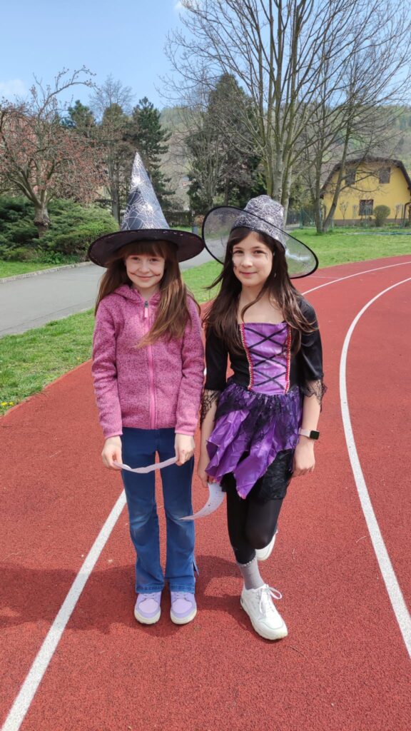 V pátek odpoledne se naše školní hřiště proměnilo v místo plné kouzel, tajemství a zábavy. Žáci 3. a 4. ročníku se zapojili do oslav čarodějnického dne, který přinesl spoustu zážitků a radosti. Hned po příchodu do družiny si děti oblékly své kostýmy. Mezi nimi se objevily čarodějnice a čarodějové. Nechyběly klobouky, pláště ani namalované obličeje, které dotvářely pravou kouzelnickou atmosféru. Děti si vyzkoušely let na „koštěti“ mezi kužely, hledaly ukryté kouzelné předměty a soutěžily v míchání lektvarů. Děkujeme rodičům za pomoc při přípravě kostýmů a také děvčatům 8.A, která při akci pomáhala.