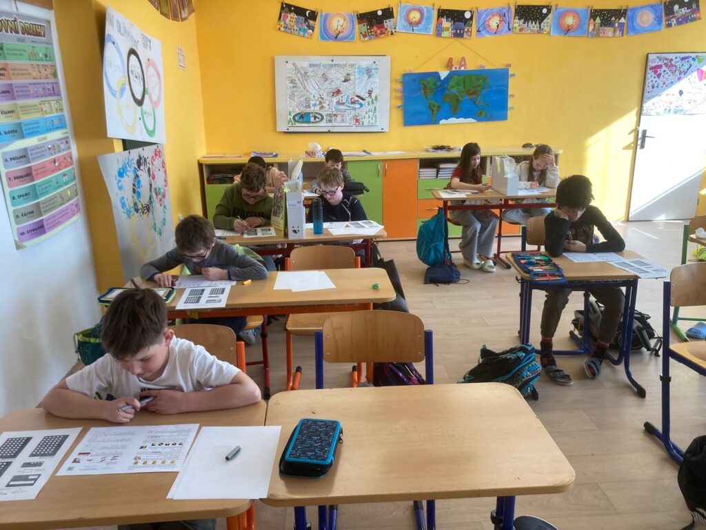 Dne 20.3.2026 se žáci naší školy zúčastnili mezinárodně koordinované soutěže Matematický klokan. Účastnili jsme se ve třech kategoriích a celkem se zapojilo 100 žáků. Největší účast byla v kategorii Klokánek, kterou řešilo 54 dětí a ve které byli nejúspěšnější Artur Kutnyk ze 4.A třídy s 92 body ze 120 možných, Simona Dvorská s 89 body a Matěj Kop s 86 body z 5.A třídy.
